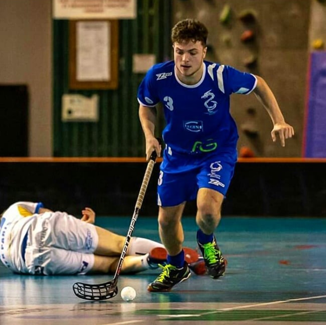 Léo a créé une entreprise directement liée à sa passion. Il nous explique comment : « Je suis pratiquant de floorball depuis près de vingt ans. Le floorball est un sport collectif indoor, proche du hockey sur glace, mais sans glace ni patins. Il se joue avec une crosse et une balle, à cinq joueurs de champ et un gardien par équipe. Le terrain, au niveau fédéral, est équivalent à un terrain de handball, entouré d’une balustrade, ce qui donne une dynamique de jeu très fluide et physique. Dans ma pratique professionnelle, j’adapte toutefois le format selon les publics et les infrastructures : salles polyvalentes, gymnases de petite taille, écoles ou établissements spécialisés.